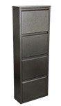 Шкаф изготовлен из стального листа толщиной 1мм. Представляет собой сварную конструкцию повышенной прочности. Оборудован четырьмя откидными полками. Полки сконструированы так, что позволяют хранить различную обувь, в том числе и обувь с высоким голенищем.