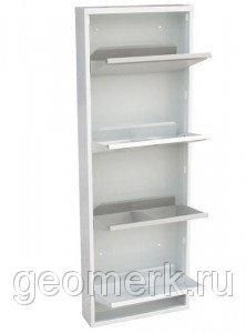 Шкаф металлический для хранения обуви. Габариты (ВхШхГ): 1366х500х200мм. Шкаф изготовлен из стального листа толщиной 1мм. Представляет собой сварную конструкцию повышенной прочности. Оборудован четырьмя откидными полками. Полки сконструированы так, что позволяют хранить различную обувь, в том числе и обувь с высоким голенищем. Покрыт стойкой полимерно-порошковой краской, цвет - белый. Задняя стенка шкафа имеет специальные отверстия для крепления шкафа к стене. Износостойкий и долговечный шкаф-обувница прекрасно впишется в любой интерьер и прослужит Вам долгие годы. None