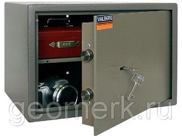 Сейф запирается на ключевой замок KABA MAUER. Специальная ригельная система запирания двери позволяет предотвратить попытки вскрыть сейф путем воздействия на петли.