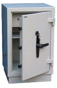 Сейф запирается на ключевой механический замок CAWI (Германия). Сейф оборудован специальным запорным механизмом CAWI (Германия). Дверь сейфа крепится на петлях. Специальная ригельная система запирания двери позволяет предотвратить попытки вскрыть сейф путем воздействия на петли.