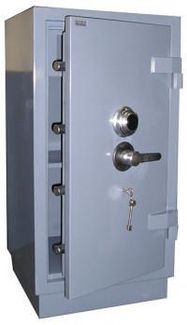 Сейф металлический офисный КЗ-045ТК. Габариты внешние (ВхШхГ): 945х500х445мм. Габариты внутренние (ВхШхГ): 780х390х310мм. Толщина металла: внешний корпус 2мм, внутренний корпус 1,5мм. Сварная конструкция. Состоит из наружного и внутреннего корпуса, между которыми находится инертный материал. Внутри расположена одна полка. Оборудован внутренним трейзером, запирающимся на отдельный замок. Сейф запирается на ключевой механический замок CAWI (Германия) и кодовый механический замок. Сейф оборудован специальным запорным механизмом CAWI (Германия). Дверь сейфа крепится на петлях. Специальная ригельная система запирания двери позволяет предотвратить попытки вскрыть сейф путем воздействия на петли. Окрашен полимерно-порошковой краской. Вес: 200кг. None