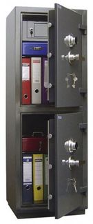 Каждая секция сейфа запирается на отдельный ключевой механический замок CAWI (Германия) и кодовый механический замок SARGENT. Сейф оборудован специальным запорным механизмом CAWI (Германия). Двери сейфа крепятся на петлях. Специальная ригельная система запирания позволяет предотвратить попытки вскрыть сейф путем воздействия на петли.