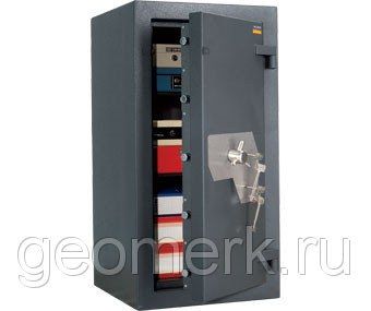 Сейф запирается на два механических ключевых замка KABA MAUER. Специальная 3-сторонняя усиленная ригельная система запирания двери позволяет предотвратить попытки вскрыть сейф путем воздействия на петли. Сейф оснащен системой блокировки ригельного механизма при попытке выбивания замка.
