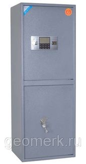 Верхняя секция сейфа запирается электронный кодовый замок, нижняя секция - на 8-сувальдный сейфовый замок с ригельной системой запирания. Специальная ригельная система запирания двери позволяет предотвратить попытки вскрыть сейф путем воздействия на петли.