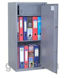 Сейф металлический офисный ШБМ-90Т. Габариты внешние (ВхШхГ): 900х440х365мм. Толщина металла: толщина стенок корпуса 2мм. Толщина двери 5мм. Сварная конструкция. Состоит из наружного и внутреннего корпуса, между которыми находится инертный материал. Внутри расположена одна полка. Сейф оборудован внутренним трейзером, запирающимся на отдельный замок. Сейф запирается на 8-ми сувальдный ключевой замок с ригельной системой запирания. Специальная ригельная система запирания двери позволяет предотвратить попытки вскрыть сейф путем воздействия на петли. Окрашен порошковой эмалью серого цвета. Вес: 55кг. None