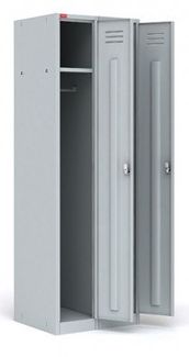Каждая секция оборудована полкой для головных уборов, перекладиной и двумя крючками для одежды. Двери запираются на врезной замок.