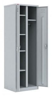 Габариты (ВхШхГ): 1860х600х500мм. Шкаф сборно-разборный односекционный металлический, с двумя отделениями. Материал изготовления - листовая холодная сталь, толщина 0,7мм. В одном отделении имеется полка для головных уборов, перекладина, 2 крючка для одежды. Отделение запирается отдельным врезным замком. В другом отделении имеется 4 регулируемые по высоте полки - для хранения одежды или документов. Отделение запирается отдельным врезным замком. Покрытие полимерно-порошковое, цвет светло-серый RAL 7035. Возможность окраски в любые цвета RAL. Вес: 40кг. None