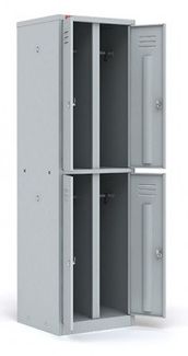 В каждом отделении имеется перекладина и два крючка для одежды. Каждая секция запирается дверями и отдельным врезным замком.
