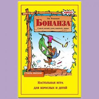 Много ли бобов вы посадили в своей жизни? Очень может быть, что вы и не подозреваете, какой это интересный процесс! Но ничего страшного, наконец-то у вас есть шанс это исправить. Вместе с Бонанзой вы можете заняться неожиданно увлекательной отраслью сельского хозяйства – разведением бобовых культур! Отличная семейная игра: добрая, лёгкая и интересная. Игра основана на общении между игроками: чем активнее игрок меняется картами, чем больше дарит и больше принимает в дар, тем больше шансов у него стать победителем. None