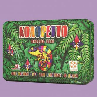 Игроки собирают цветные карты хамелеончиков, но лишь три цвета карт принесут в конце игры призовые очки, а вот остальные цвета, если они у вас оказались, обернутся штрафными очками. Но в Колоретто то, какие карты достанутся вам, зависит и от ваших соперников, которые в той же мере зависят от вашего выбора. Так что вам постоянно придётся предугадывать действия других игроков и иногда рисковать, а вовремя выбрать правильный цвет будет для вас не менее важно, чем для хамелеона, прячущегося на грядке с клубникой… None