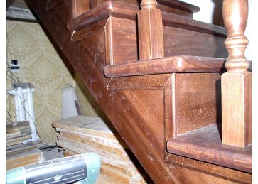 Изготовление и монтаж межэтажных деревянных лестниц для дома, дачи, квартиры. Лестницы из на второй этаж, мансардные лестницы, лестницы в подвал из дерева на тетивах и косоурах, прямые и поворотные, веерные и с промежуточной площадкой. Возможна установка на металлический каркас или облицовка бетонных лестниц. Делаем лестницы из сосны, лестницы из дуба, лестницы из лиственницы, лестницы из бука. Отделка по желанию заказчика: водные морилка и лак, воск, масло, пропитки. Договор, гарантия