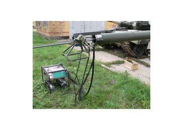 Установка предназначена для механизированной химической чистки каналов стволов гладкоствольных пушек калибра 125 мм (2А-46, Д-81) при техническом обслуживании и после стрельбы. Тип установки мобильный (в комплект установки входит тележка грузовая ТГ - 300) Способ чистки химико-механический с возвратно-поступательным движением щеток в канале ствола и подачей в него моющей жидкости.