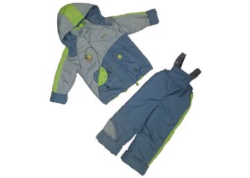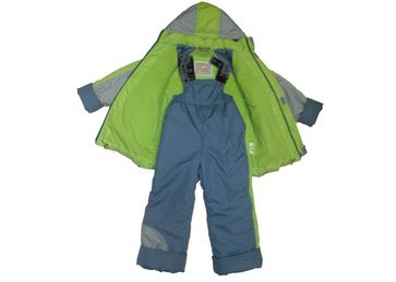 Верх куртки выполнен из плащевой ткани. Подкладка в куртке - хлопок, подкладка в брюках - шелк. Утеплитель - один слой синтепона.