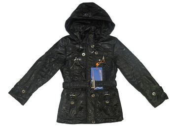 Куртка весенняя для девочки 8 - 9 лет. Верх куртки выполнен из лакированного материала черного цвета.