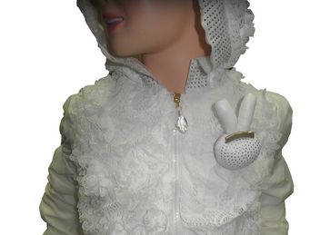 Ветровка имеет отделку в виде кружева на животе и на капюшоне. Визуально куртка больше похожа на блузку. Женщины в восторге.