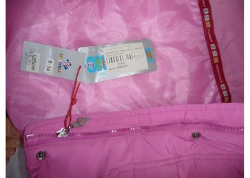 Верх выполнен из плотной плащевой ткани. Подкладка - шелк. Утеплитель - синтепон. Имеется съемная меховая жилетка на подкладке.