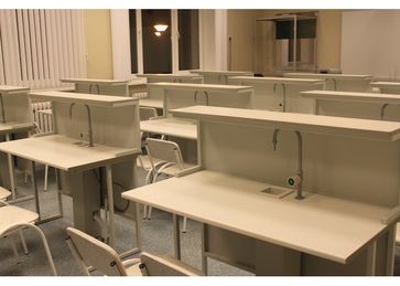 - Стол ученический лабораторный с надстройкой и сантехникой для кабинета химии по выгодной цене 13 400 р. руб.;