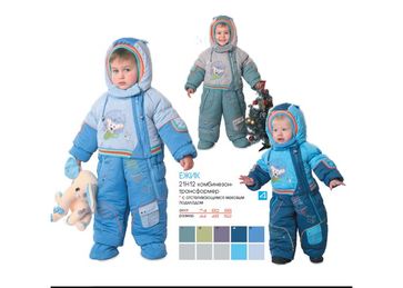 Комбинезон-трансформер "Ежик" для мальчиковсовместный со съемным меховым вкладышем. Комбинезон представляет собой изделие, в котором куртка и брюки соединены воедино, вместе. Трансформер может принимать три вида: спальный мешок, спальный мешок с ножками, обычный комбинезон.