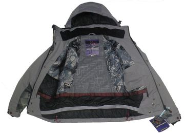 Куртки фирмы WHS красного и серого цветов. Верх - плотная плащевая ткань с мембраной. Подкладка - нейлон. Утеплитель - холофайбер. Внутри куртки имеется снегозащитная юбка, много карманов. Манжеты в рукавах трикотажные с отверстием под большой палец.