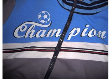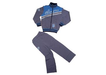 Спортивный костюм "Чемпион" для мальчиков производства фирмы «Овас» г. Чебоксары. Костюм состоит из куртки и брюк, выполненных из тонкого трикотажного полотна. Куртка имеет трикотажные воротник, манжеты на рукавах и на подоле.