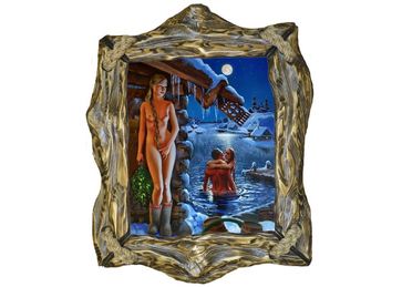 Картины для бани с веселыми изображениями сделают интерьер успокаивающим, располагающим к процессу очищения тела и духа, повысят настроение. Рамка для картин изготовлена из натурального состаренного дерева, изображение – печать на искусственном холсте. Многочисленные варианты рисунков и видов рамок позволяет заказчику реализовать свои предпочтения. Размер изображения - 30см*40см. По желанию клиента можно изготовить картины других размеров; в таком случае цена изделия будет изменена.