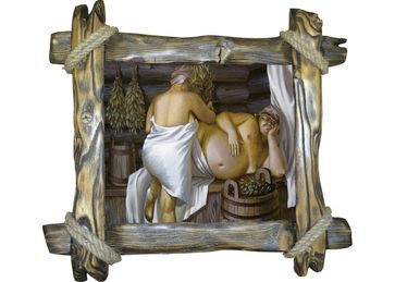 Картины для бани с веселыми изображениями сделают интерьер успокаивающим, располагающим к процессу очищения тела и духа, повысят настроение. Рамка для картин изготовлена из натурального состаренного дерева, изображение – печать на искусственном холсте. Многочисленные варианты рисунков и видов рамок позволяет заказчику реализовать свои предпочтения. Размер изображения - 30см*40см. По желанию клиента можно изготовить картины других размеров; в таком случае цена изделия будет изменена.