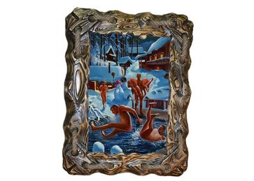Картины для банив комнате отдыха сделают интерьер бани успокаивающим, располагающим к процессу очищения тела и духа, повысят настроение. Картины с веселыми изображениями в раме из состаренного дерева для бани и сауны станут украшением бани, предметом гордости, символом вашего благополучия и комфорта. А, если Ваша баня уже оформлена достойным образом, то картины для бани и сауны – прекрасный подарок друзьям, у которых декоративные проблемы интерьера ещё не решены.