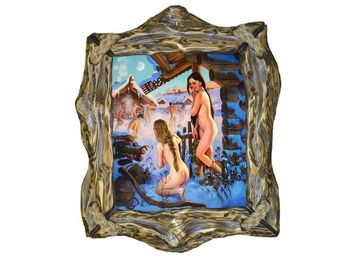 Картины для бани с веселыми изображениями сделают интерьер успокаивающим, располагающим к процессу очищения тела и духа, повысят настроение. Рамка для картин изготовлена из натурального состаренного дерева, изображение – печать на искусственном холсте. Многочисленные варианты рисунков и видов рамок позволяет заказчику реализовать свои предпочтения. Размер изображения - 30см*40см. По желанию клиента можно изготовить картины других размеров; в таком случае цена изделия будет изменена.