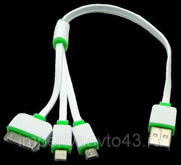 Кабель предназначен для устройств семейства Apple с разъемом 8-pin, 30-pin, а также для устройств с разъемом micro USB. Позволяет осуществлять зарядку устройств. Кабель с разъемом 8-pin может также осуществлять синхронизацию данных с ПК. предоплата Страна производства: Россия Возможен самовывоз. Есть доставка.