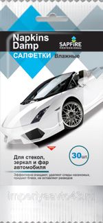- Салфетки влажные для стекол, зеркал и фар автомобиля SAPFIRE 30 шт. 0806-SOG в каталоге Бумажные салфетки в Кирове;
