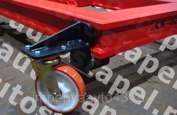 Для установки автомобиля с помощью двухстоечного подъёмника и перемещения по цеху к месту работ, рама оснащена сьёмными кронштейнами с усиленными поворотными колесами общей грузоподъёмностью 3500кг.