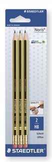 Карандаш чернографитовый Noris 122 HB с ластиком, 3 штуки