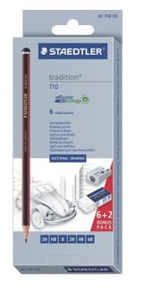 - Карандаш чернографитовый Tradition, 6 штук (2H, HB, B, 2B, 4B, 6B)+ластик+точилка 51010 картонная упаковка по выгодной цене 422 р. руб.;