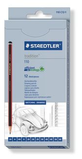 Карандаш чернографитовый tradition, набор 12 шт., (6B, 5B, 2x4B, 3B, 3x2B, B, HB, H, 2H)