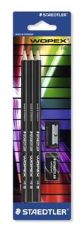 - Карандаш чернографитовый WOPEX HB корпус черный, 3 штуки, ластик, точилка по выгодной цене 258 р. руб.;