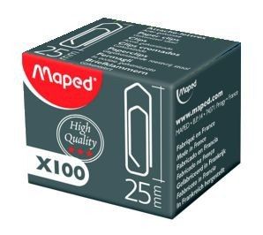- Скрепки никелированные, 25 мм, 100 штук в коробке MAPED по выгодной цене 64 р. руб.;