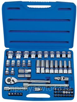 Набор инструментов универсальный, 58 предметов KING TONY 4558MR01 включает широкий ряд стандартных и глубоких головок, назначение которых – работа с торцевым крепежом. Глубокие головки незаменимы в работе со шпильками, с крепежом, находящимся в углублении, а вставки (биты) разной конфигурации, также входящие в комплектацию набора, позволят работать с крепежом с внутренним профилем.