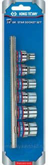 Набор торцевых головок 3 8", TORX Е-стандарт, Е8-Е18, 6 предметов KING TONY 3106PR