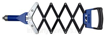 Заклёпочник оснащён зажимными губками из твёрдосплавной стали, адаптерами для заклёпок разного диаметра, специальным ключом, рукояткой "гармошка".