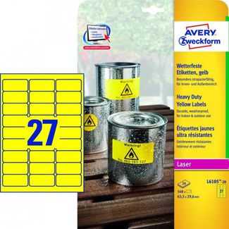 Этикетки всепогодные 63,5х29,6 мм. желтые тип печати L+K
