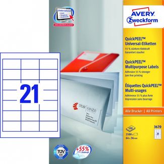 Самоклеящаяся этикека универсальная QP 64х36 мм. IJ+L+K. белый 2100 штук 100 листов