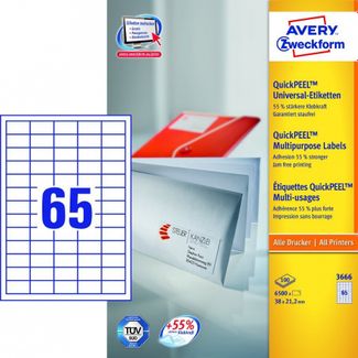 Самоклеящиеся этикетки универсальные QP 38x21,2 мм. IJ+L+K белый 6500 штук 100 листов