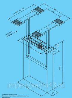 Благодаря уникальной схеме подъемника вся нагрузка на подъемник и его вес равномерно распределяется через раму на пол цеха.