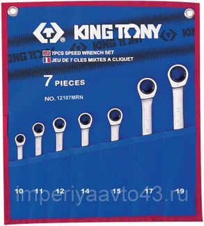 - Набор комбинированных трещоточных ключей, 10-19 мм, чехол из теторона, 7 предметов KING TONY 12107MRN по выгодной цене 4 170 р. руб.;