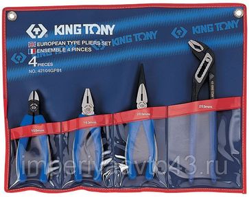 - Набор пассатижей, плоскогубцев и бокорезов, 4 предмета KING TONY 42104GP01 в каталоге Наборы инструментов в Кирове;