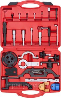Набор включает все необходимые инструменты для профессионального ремонта двигателей Opel: фиксатор маховика, фиксатор коленчатого вала, фиксатор распределительного вала, фиксатор вала насоса высокого давления (применимо к дизельным моторам), съемник шкива коленвала, натяжитель ремня, а также подробные таблицы использования инструментов. Набор является полным функциональным аналогом оригинальных инструментов для Opel.