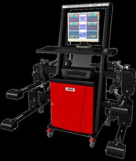 Классическая компьютерная диагностическая система (стенд) сход-развал КДС-5К®, использующая датчики с кордовой связью.