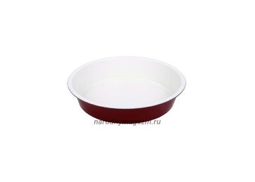 Гарантия производителя. Форма для выпечки круглая 24х4.8 см, углеродистая сталь, керамическое антипригарное покрытие, цвет: бордовый, коричневый. None