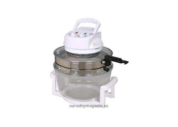 Гарантия производителя. Мощность 1400 вт. рабочий объем колбы от 12л до 17л. механич. управление. самоочистка. съемная крышка. колба-духовка из жаропрочного стекла. автомат. включение и отключение. таймер на 60 мин. регулируемая температура приготовления 65-250 °с. None