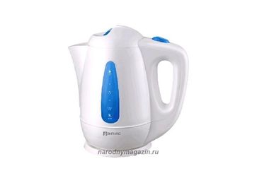 Гарантия производителя. Мощность 2200 вт. объем 1.7л. корпус из пластика. дисковый нагреват. элемент из нерж. стали. автомат. и ручной выключатель. автомат. отключение при отсутствии воды. внутренняя подсветка. цвет белый/синий. None